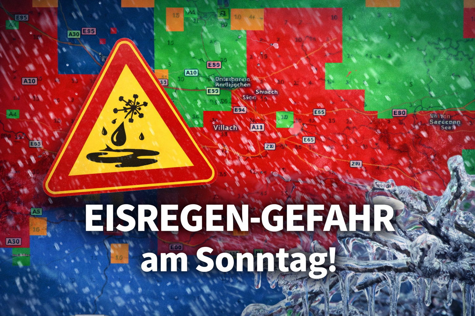➝ hohes Risiko für gefrierenden Regen, v. a. im Raum Villach & Drautal.