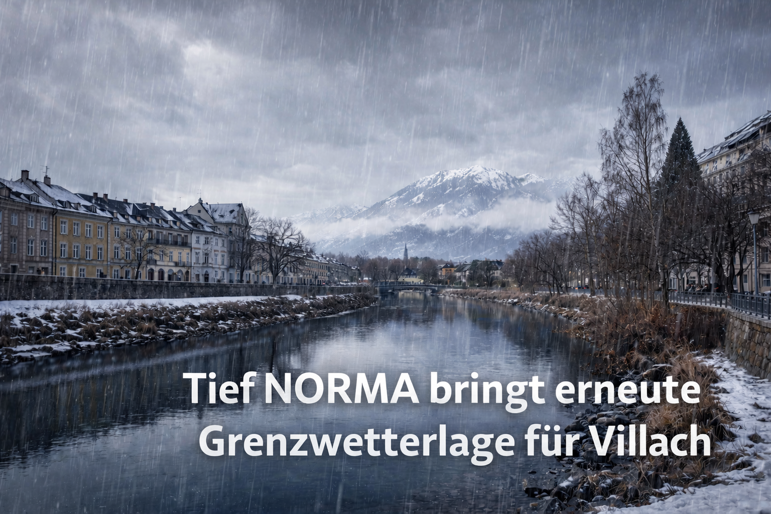 Tief NORMA bringt für Villach erneut eine hochgradig grenzwertige Wetterlage.