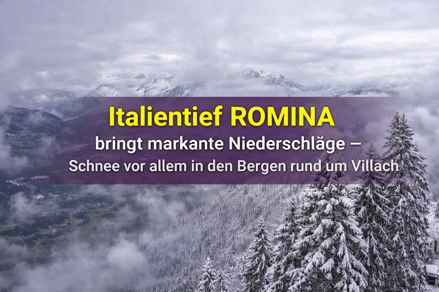 Italientief ROMINA bringt für den Raum Villach eine nasse, teils kalte Witterungsphase, die im Tal vor allem durch Regen geprägt ist. Winterlich relevant wird das Ereignis vor allem in den umliegenden Bergen, wo sich der Niederschlag zunehmend als Schnee akkumuliert.