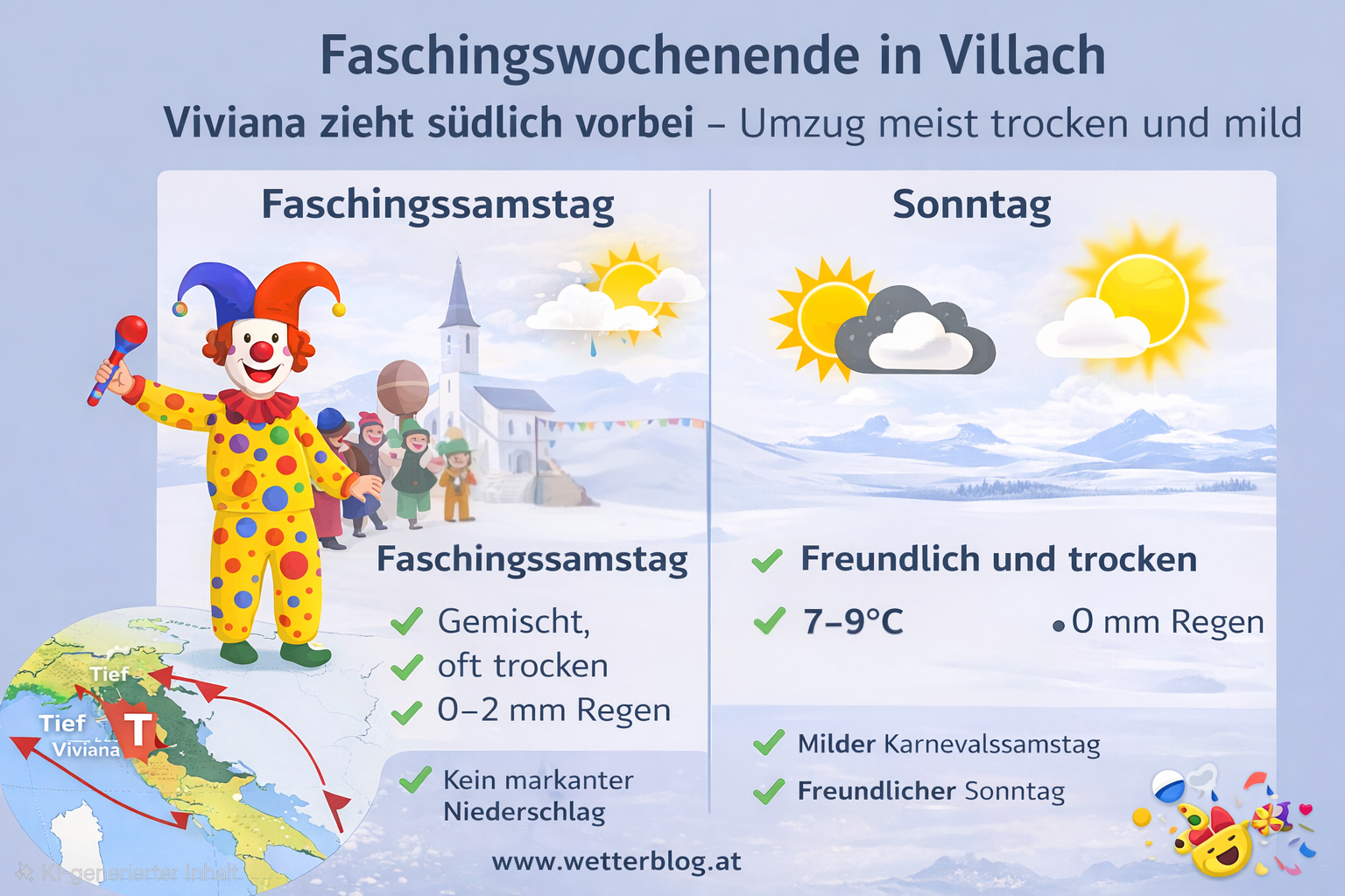 Die südlichere Zugbahn von Viviana macht sich klar bemerkbar – Kärnten liegt nur am Rand des Geschehens.
