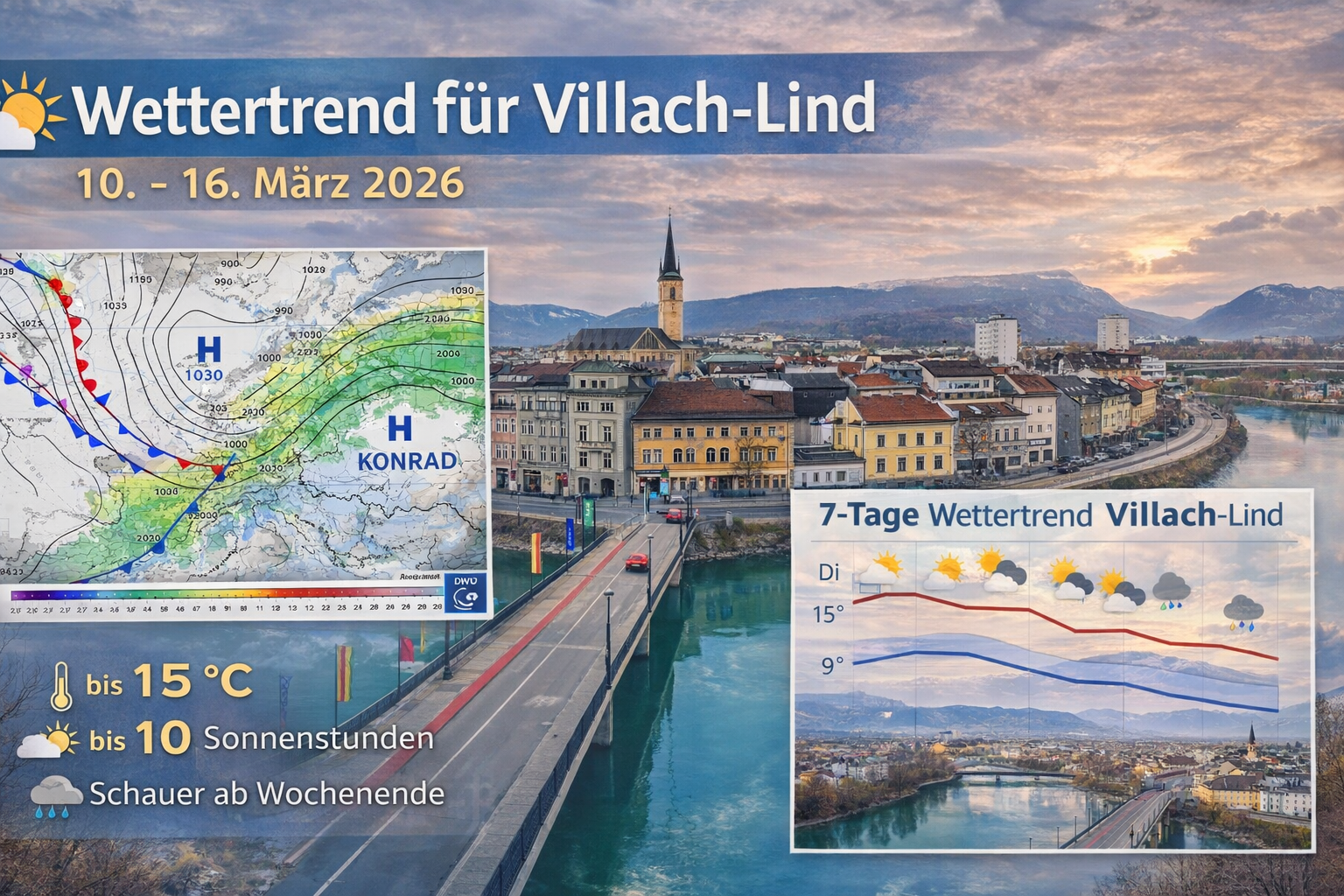 Nach mehreren ruhigen Hochdrucktagen bleibt das Wetter in Kärnten zunächst weiterhin mild und überwiegend freundlich. Verantwortlich dafür ist Hoch „Konrad“, das sich über Osteuropa etabliert hat und trockene Luft nach Mitteleuropa lenkt.